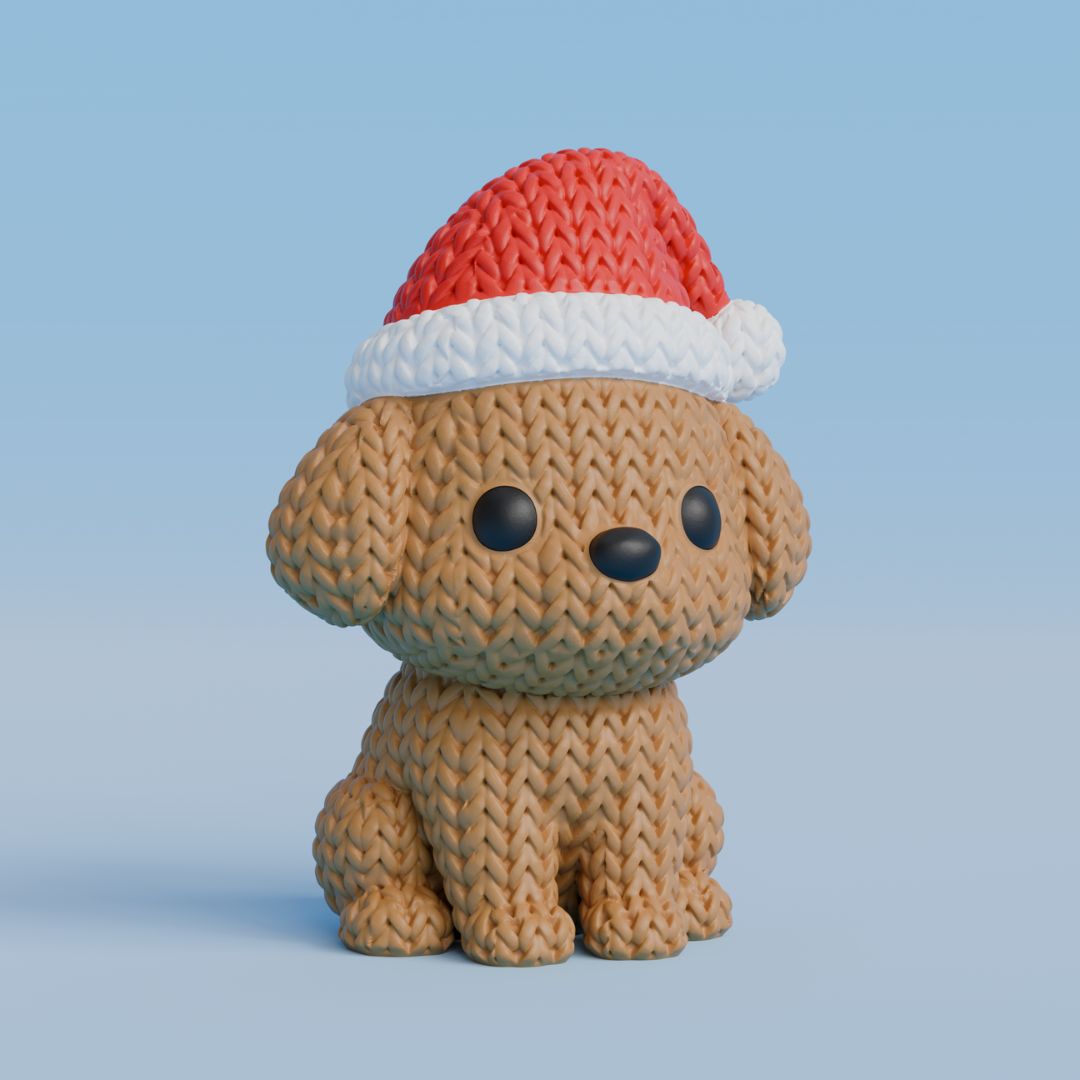 Hæklet Hund med nissehue – 3D Printet Dekorationsfigur i Hæklet Look
